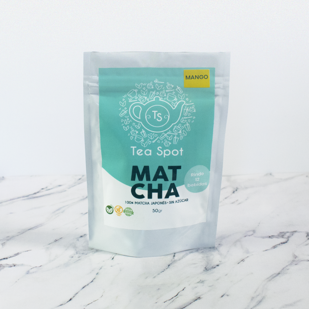 Matcha 100% japones con saborizante de mango, sin azúcar.